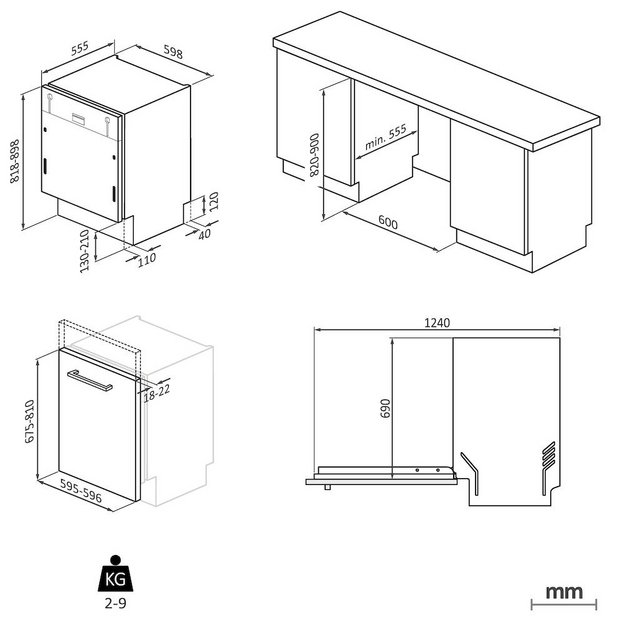 Большая часть полноразмерных и узких посудомоек встраиваемого и отдельностоящего вида имеет высоту около 82-85 см: такие модели легко размещаются под столешницей. Встраиваемые модели несколько ниже, так как у них отсутствует верхняя крышка.