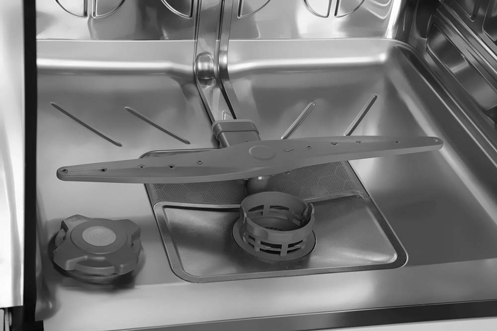 Как известно, принцип работы посудомоечной машины состоит в том, что на посуду в корзинах воздействуют сильные струи воды, которые подаются сквозь специальные форсунки во вращающихся разбрызгивателях-коромыслах. Класс мытья определяется, исходя из количества разбрызгивателей и форсунок, а также их диаметра — чем больше отверстий и чем меньше их диаметр, тем выше класс. Имеет значение также и расположение отверстий, так как струи воды не должны пересекаться — это мешает точности попадания в нужные места, а значит, и эффективности мытья. Кроме того, в камере не должно оставаться «слепых» зон, куда вода попадать не будет.