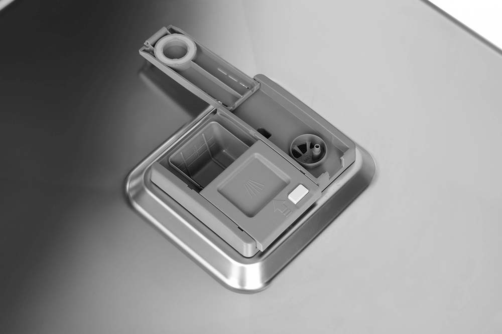 Для высококачественного мытья требуются три компонента. Порошок служит для удаления загрязнений, оставшихся на посуде. Соль нейтрализует примеси, содержащиеся в водопроводной воде, и позволяет избавиться от накипи и известковых отложений на посуде и внутренней поверхности камеры. И, наконец, ополаскиватель позволяет уменьшить поверхностное натяжение воды при помощи специальных составляющих — тензидов, которые облегчают скатывание капель воды. Он способствует удалению остатков порошка и соли, придает посуде ослепительный блеск, и в конечном счете обеспечивает лучшее и быстрое высыхание, а также отсутствие разводов и потеков на ее поверхности.