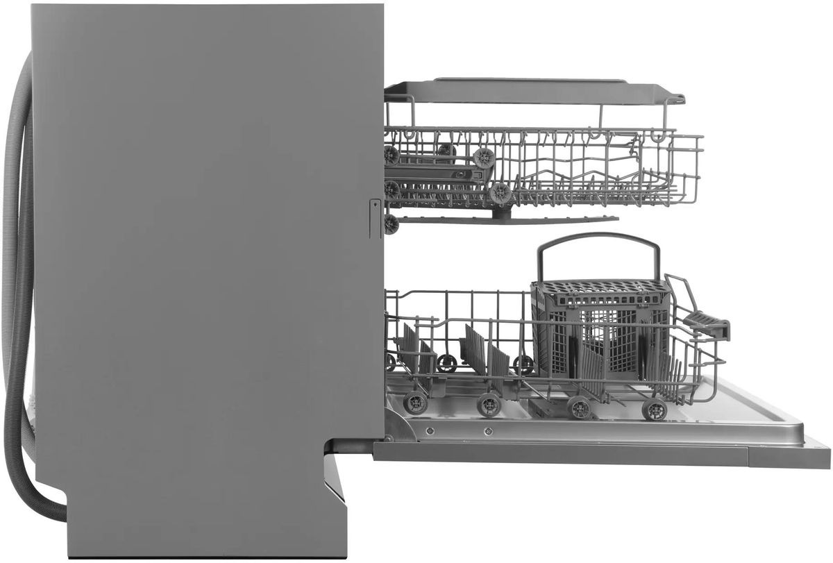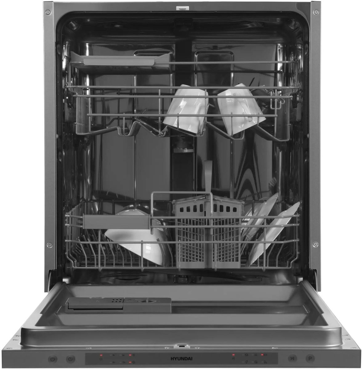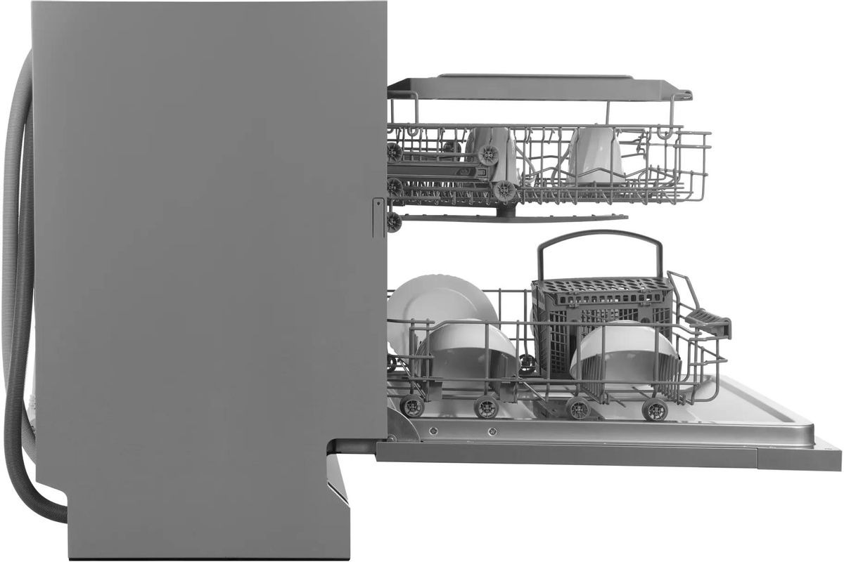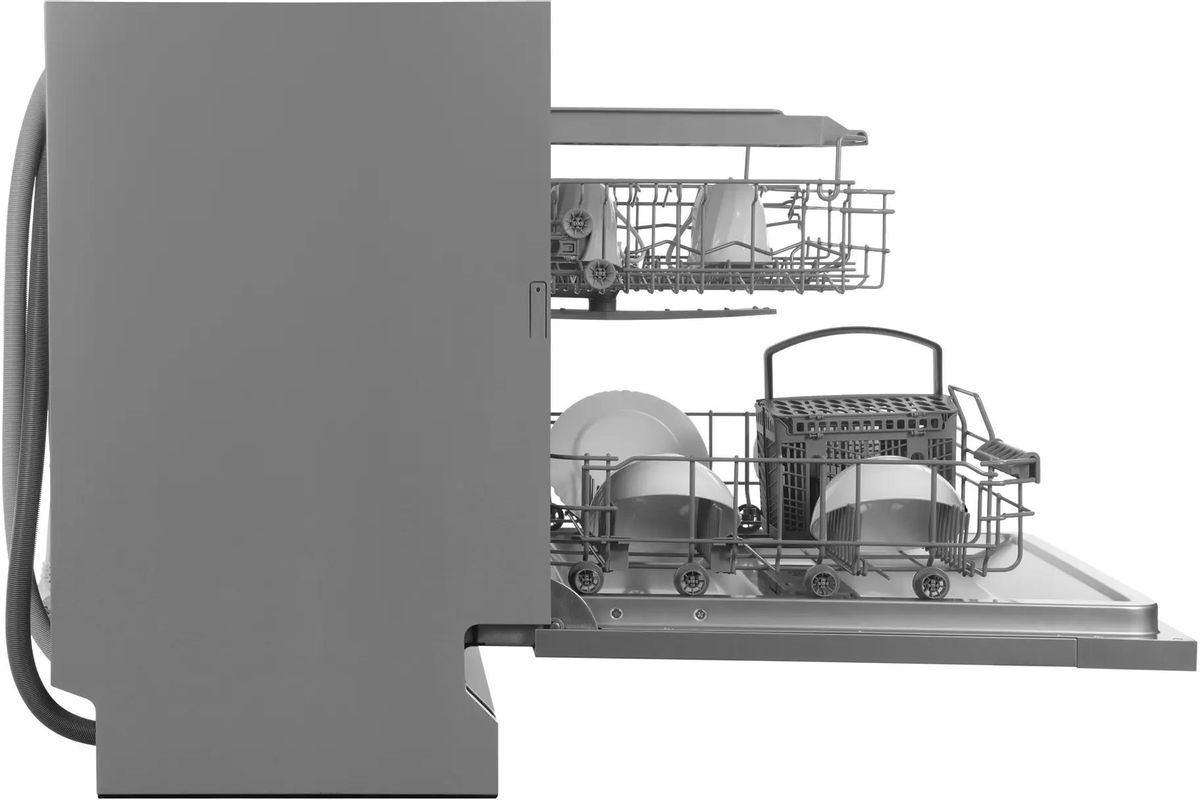 Встраиваемая модель Хендай отлично впишется в любой интерьер, главное — правильно выбрать место, чтобы подвести коммуникации. Устанавливается в нишу целиком, полностью закрывается декоративной панелью. Обратите внимание: в комплекте не идет фасад, его необходимо установить самостоятельно. Имеет стандартные размеры, поэтому может не поместиться на очень маленькой кухне. В камеру можно загрузить ограниченное число комплектов: 14 шт. Комплектом считается набор посуды на одного человека, который нужен для полноценного приема пищи: глубокая и плоская тарелки, тарелка для салата, блюдце под чашку, сама чашка, ложка и вилка.