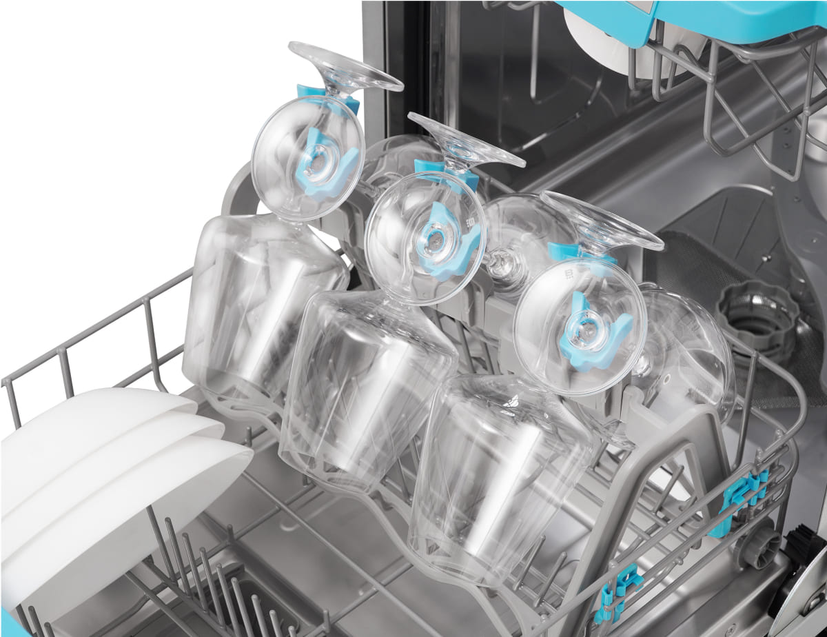 Для того чтобы сохранить бокалы в целости, необходимо, чтобы они не соприкасались друг с другом. Бокалы на высоких ножках размещают в нижней корзине, используя различные фиксаторы. Например, посудомойки AEG оснащаются резиновыми фиксаторами Soft Grips, которые надежно удерживают хрупкие бокалы и фужеры, а ножки их фиксируются дополнительно при помощи зажимов Soft Spikes, не позволяющим поворачиваться во время мойки. Подходящие для любых посудомоек резиновые и силиконовые фиксаторы в виде трубок с захватом для ножек на одном из концов, которые крепятся к направляющим корзины, можно приобрести и отдельно.