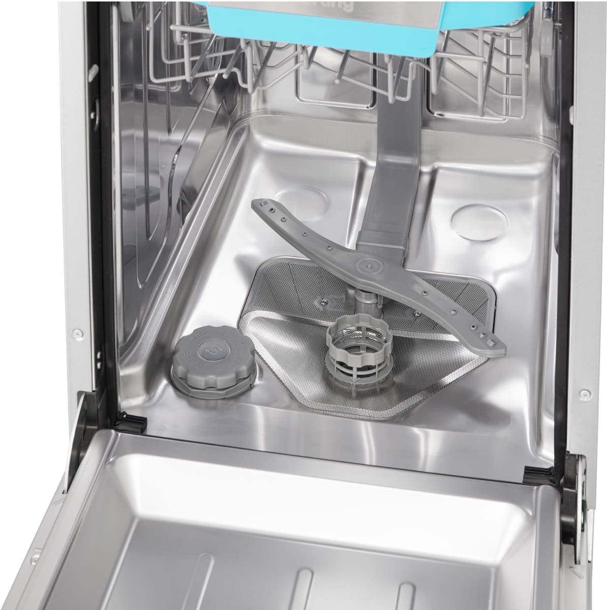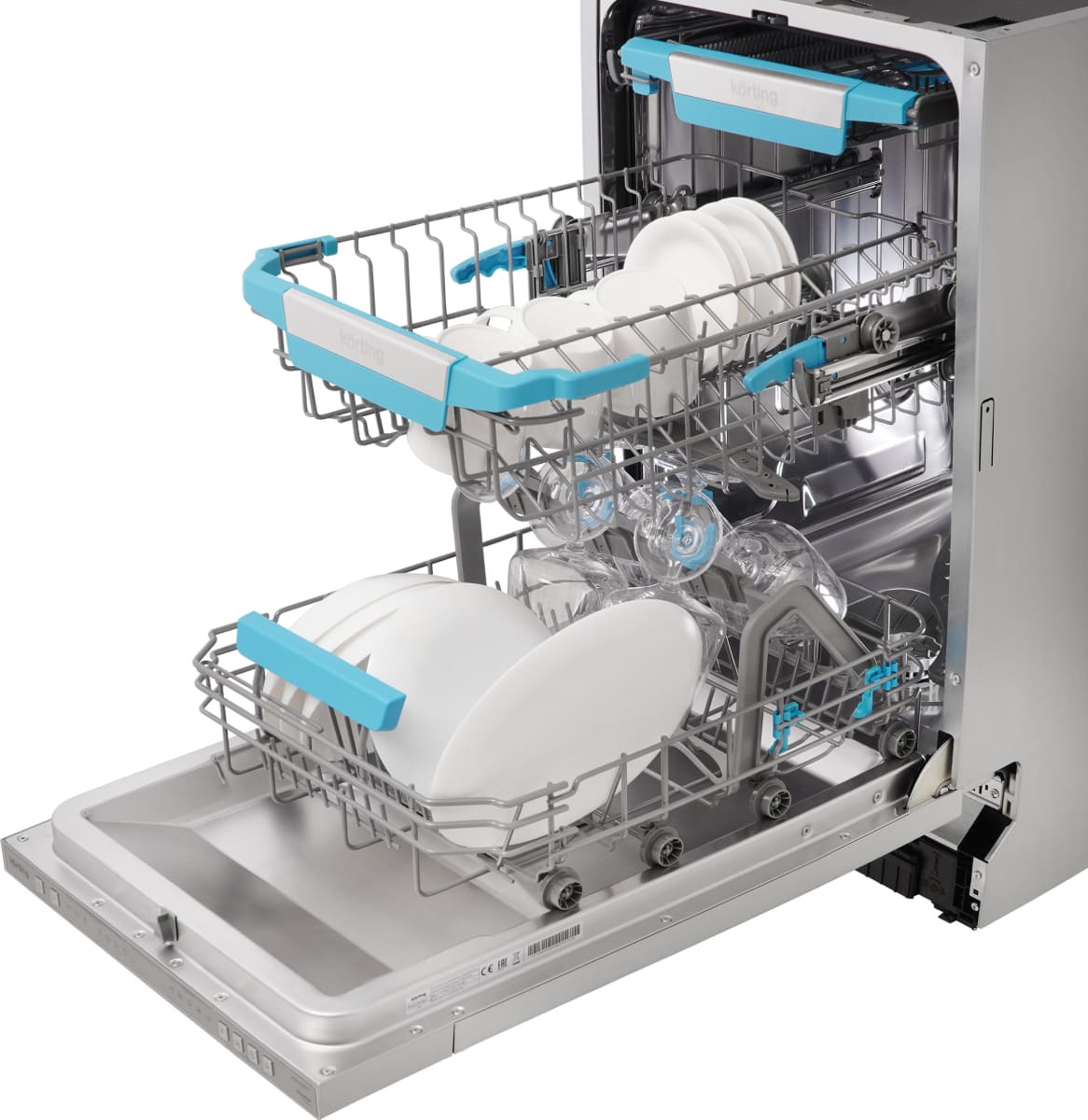 Встраиваемая модель Кертинг отлично впишется в любой интерьер, главное — правильно выбрать место, чтобы подвести коммуникации. Устанавливается в нишу целиком, полностью закрывается декоративной панелью. Обратите внимание: в комплекте не идет фасад, его необходимо установить самостоятельно. Имеет уменьшенную ширину — благодаря этому поместится даже на очень маленькой кухне. В камеру можно загрузить ограниченное число комплектов: 10 шт. Комплектом считается набор посуды на одного человека, который нужен для полноценного приема пищи: глубокая и плоская тарелки, тарелка для салата, блюдце под чашку, сама чашка, ложка и вилка.