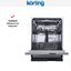 Korting KDI-60110 предназначена для встраивания в кухонную мебель. Вам не придется заказывать тумбу для встройки отдельно, так как машинка имеет стандартные размеры: ширину 60 см, высоту 81,5 см и глубину 55 см. На дверце крепится мебельный фасад, который подбирается в соответствии с цветом и дизайном вашей кухни. Панель управления серебристого цвета с кнопками, таймером и ЖК-дисплеем находится на торце дверцы и не видна, когда машина работает.