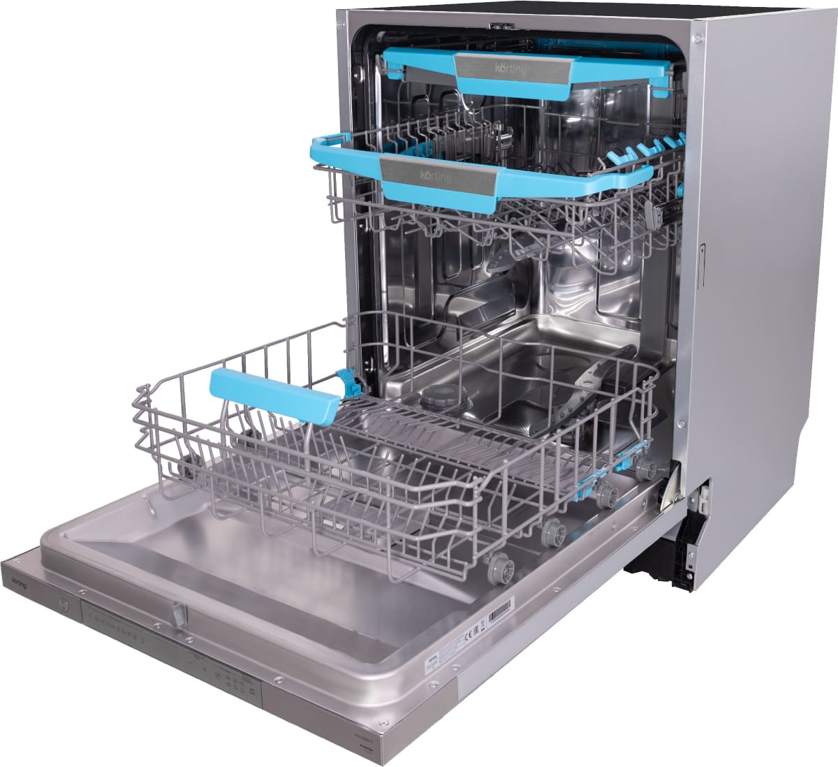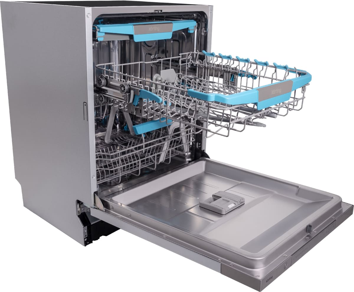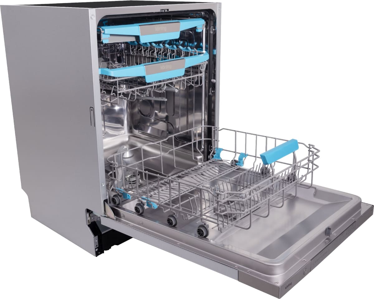 Встраиваемая модель Кертинг отлично впишется в любой интерьер, главное — правильно выбрать место, чтобы подвести коммуникации. Устанавливается в нишу целиком, полностью закрывается декоративной панелью. Обратите внимание: в комплекте не идет фасад, его необходимо установить самостоятельно. Имеет стандартные размеры, поэтому может не поместиться на очень маленькой кухне. В камеру можно загрузить ограниченное число комплектов: 14 шт. Комплектом считается набор посуды на одного человека, который нужен для полноценного приема пищи: глубокая и плоская тарелки, тарелка для салата, блюдце под чашку, сама чашка, ложка и вилка.