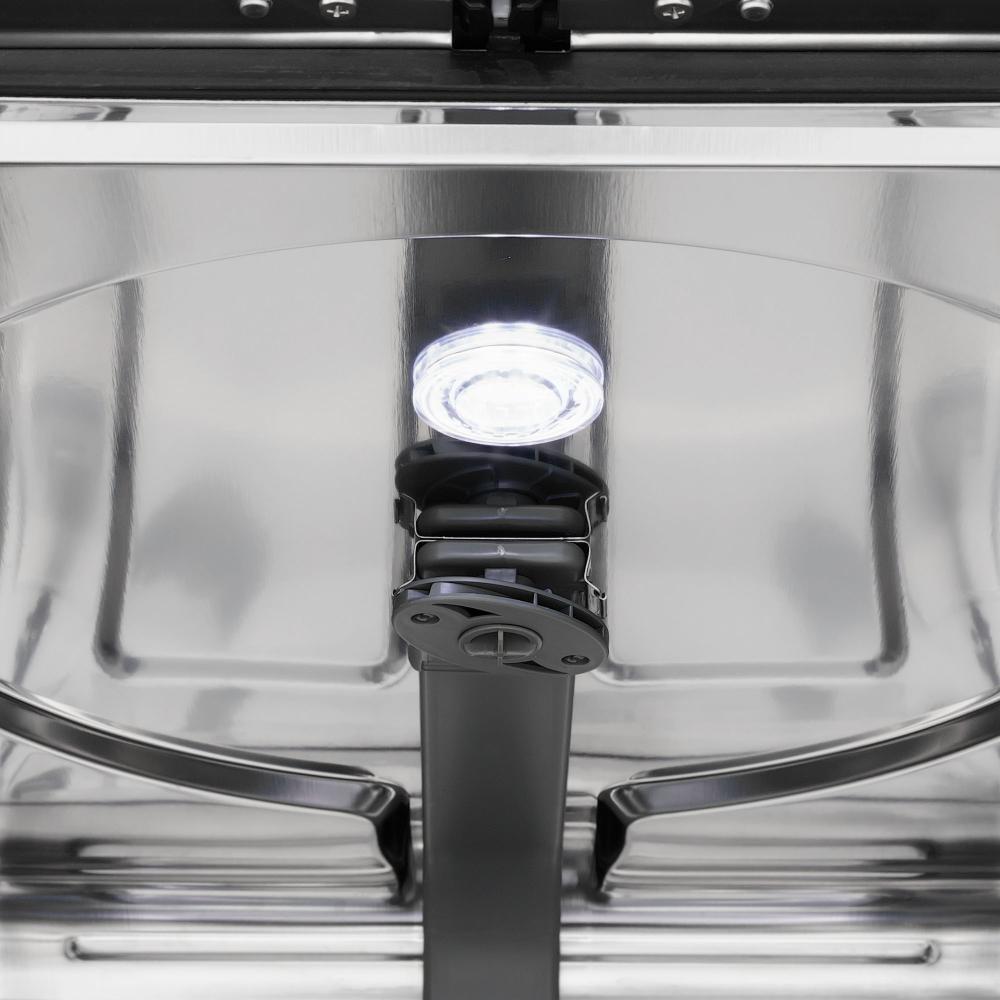 Внутренняя подсветка камеры посудомоечной машины значительно облегчает загрузку и разгрузку посуды, добавление моющего средства, соли и ополаскивателя, гарантирует поддержание чистоты и своевременное удаление остатков пищи, не позволяет забыть мелкие столовые приборы, особенно случайно упавшие на дно камеры, а также упрощает извлечение и очистку фильтра. Подсветка, как правило, включается автоматически, как только открывается дверца посудомоечной машины.
