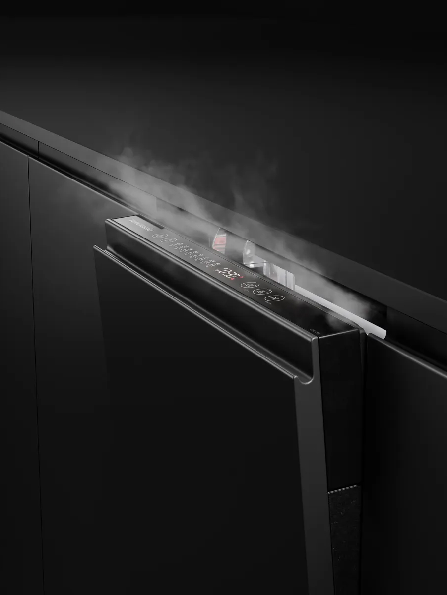 Камера посудомойки из нержавеющей стали — наиболее практичное решение, поскольку на нее оказывают воздействие горячая вода и активные моющие средства. В устройствах премиального уровня — например, в машинах AEG или Miele — для изготовления рабочей камеры используется наиболее качественная нержавеющая сталь толщиной 0,6-0,8 мм марок AISI 304 и 430. Со временем этот материал не портится и не теряет внешнего вида, а также отличается легкостью в очистке. Для того чтобы очистить камеру посудомойки, достаточно протереть ее специальным моющим средством, а затем вытереть насухо. Для большей прочности и надежности из нержавейки изготавливаются также внутренняя сторона откидной дверцы посудомойки и закрытая панель управления на верхней кромке дверцы.