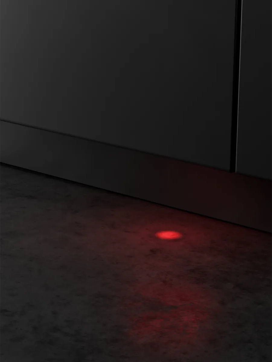 В ряде устройств используется еще одна разновидность освещения — проекция специального луча на пол кухни. Луч на полу оповещает пользователя без открывания дверцы о ходе мойки и предупреждает об ее окончании.