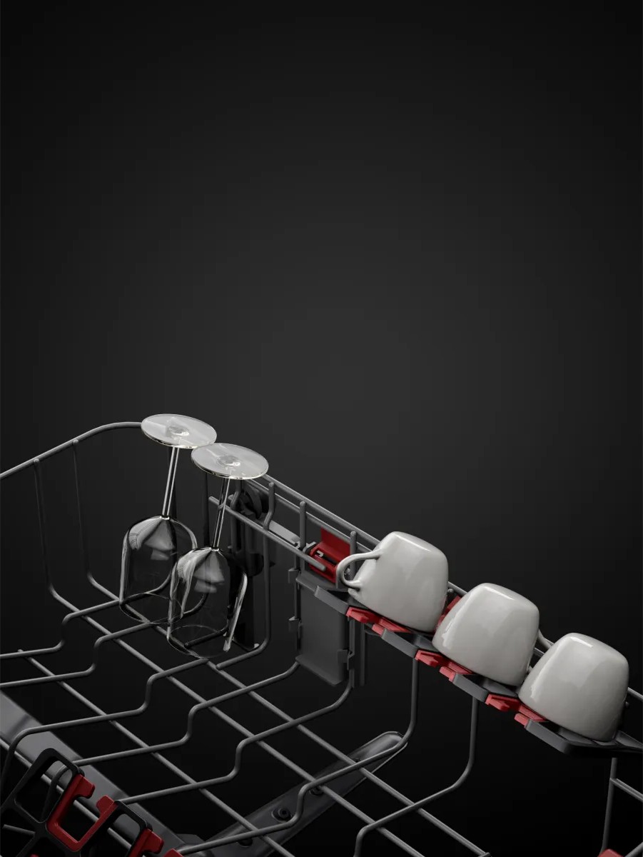 Для больших кружек, стаканов и бокалов производители предлагают оригинальные силиконовые и резиновые подставки-держатели в виде коврика с выступами-упорами, надежно фиксирующими чашку на месте и гарантирующими ее сохранность во время мойки. Подобные предметы также удобно размещаются под полочкой для столовых приборов или небольших чашек. Для того чтобы безопасно извлечь их из корзины, полочку достаточно откинуть. Верхняя корзина в большинстве современных посудомоечных машин регулируется по высоте, так что в ней найдется место для чашек и стаканов любой высоты. В моделях, где имеется третий дополнительный короб для столовых приборов, небольшие чашки можно без труда разместить в этом коробе.