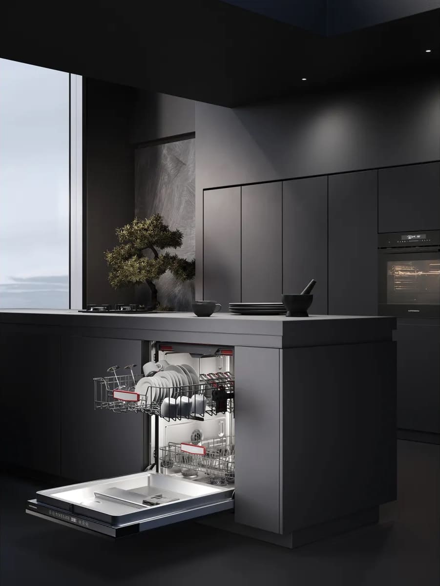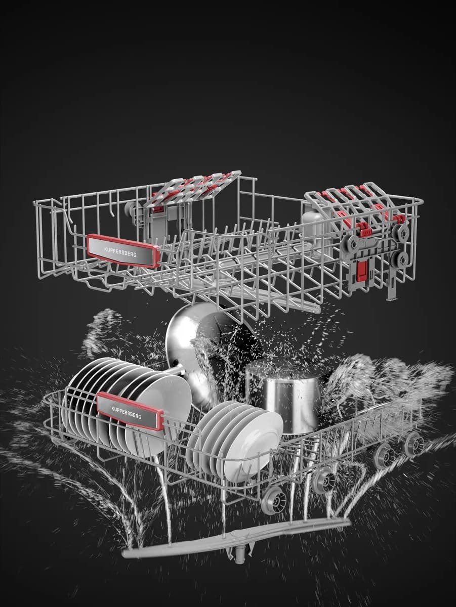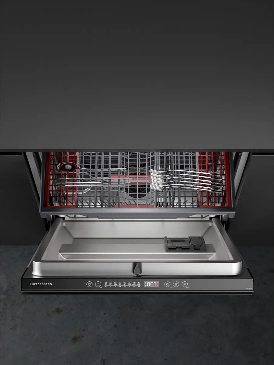 Встраиваемая модель Куперсберг отлично впишется в любой интерьер, главное — правильно выбрать место, чтобы подвести коммуникации. Устанавливается в нишу целиком, полностью закрывается декоративной панелью. Обратите внимание: в комплекте не идет фасад, его необходимо установить самостоятельно. Имеет стандартные размеры, поэтому может не поместиться на очень маленькой кухне. В камеру можно загрузить ограниченное число комплектов: 16 шт. Комплектом считается набор посуды на одного человека, который нужен для полноценного приема пищи: глубокая и плоская тарелки, тарелка для салата, блюдце под чашку, сама чашка, ложка и вилка.