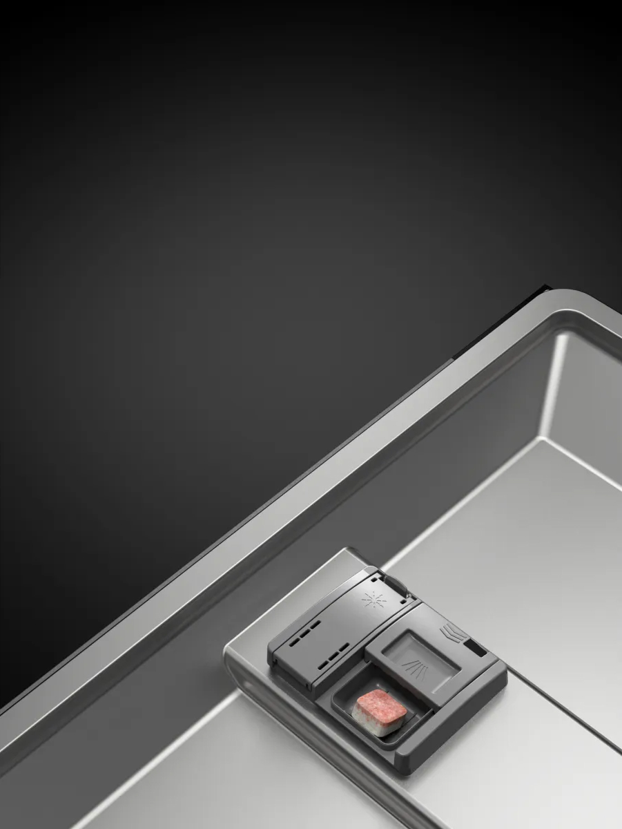 Камера посудомойки из нержавеющей стали — наиболее практичное решение, поскольку на нее оказывают воздействие горячая вода и активные моющие средства. В устройствах премиального уровня — например, в машинах AEG или Miele — для изготовления рабочей камеры используется наиболее качественная нержавеющая сталь толщиной 0,6-0,8 мм марок AISI 304 и 430. Со временем этот материал не портится и не теряет внешнего вида, а также отличается легкостью в очистке. Для того чтобы очистить камеру посудомойки, достаточно протереть ее специальным моющим средством, а затем вытереть насухо. Для большей прочности и надежности из нержавейки изготавливаются также внутренняя сторона откидной дверцы посудомойки и закрытая панель управления на верхней кромке дверцы.