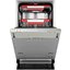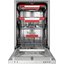 Среди дополнительных возможностей — отложенный запуск до 24 часов, индикация нехватки моющего средства и ополаскивателя, а также трёхступенчатая система фильтрации, предотвращающая повторное оседание загрязнений. Управление осуществляется через скрытую сенсорную панель в верхней части дверцы, что придаёт фасаду лаконичный и современный вид.