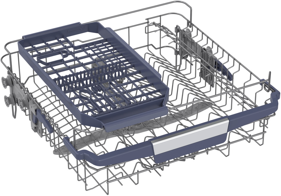 Корзина для столовых приборов — один из обязательных аксессуаров, которыми оснащается любая посудомоечная машина. Она представляет собой сетчатый пластиковый органайзер, в котором устанавливаются в вертикальном положении ложки, ножи и вилки. Корзина, как правило, разделяется на отдельные отсеки, в каждый из которых можно поместить один или несколько предметов. Зачастую сверху она закрывается специальной крышкой, которая также служит для разделения приборов, способствуя более тщательному их мытью.