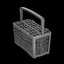 Корзина для столовых приборов — один из обязательных аксессуаров, которыми оснащается любая посудомоечная машина. Она представляет собой сетчатый пластиковый органайзер, в котором устанавливаются в вертикальном положении ложки, ножи и вилки. Корзина, как правило, разделяется на отдельные отсеки, в каждый из которых можно поместить один или несколько предметов. Зачастую сверху она закрывается специальной крышкой, которая также служит для разделения приборов, способствуя более тщательному их мытью.