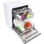 Функция отложенного старта позволяет выбрать удобное время мойки. Камера устройства изготовлена из настоящей нержавеющей стали толщиной 0,6-0,8 мм. Она устойчива к появлению ржавчины, коррозии, а также перепадам температур и воздействию моющих средств. Поверхность не требует специального ухода и быстро очищается. За счет встраивания модель не видно в кухонном гарнитуре, так как она скрыта за мебельным фасадом, поэтому ее можно устанавливать в любые дизайны. Прибор оснащен специальным индикатором, который проецируется на пол. Он позволяет пользователю контролировать процесс мойки, так как панель управления скрыта, это особенно удобно, так не требует открытия посудомоечной машины.