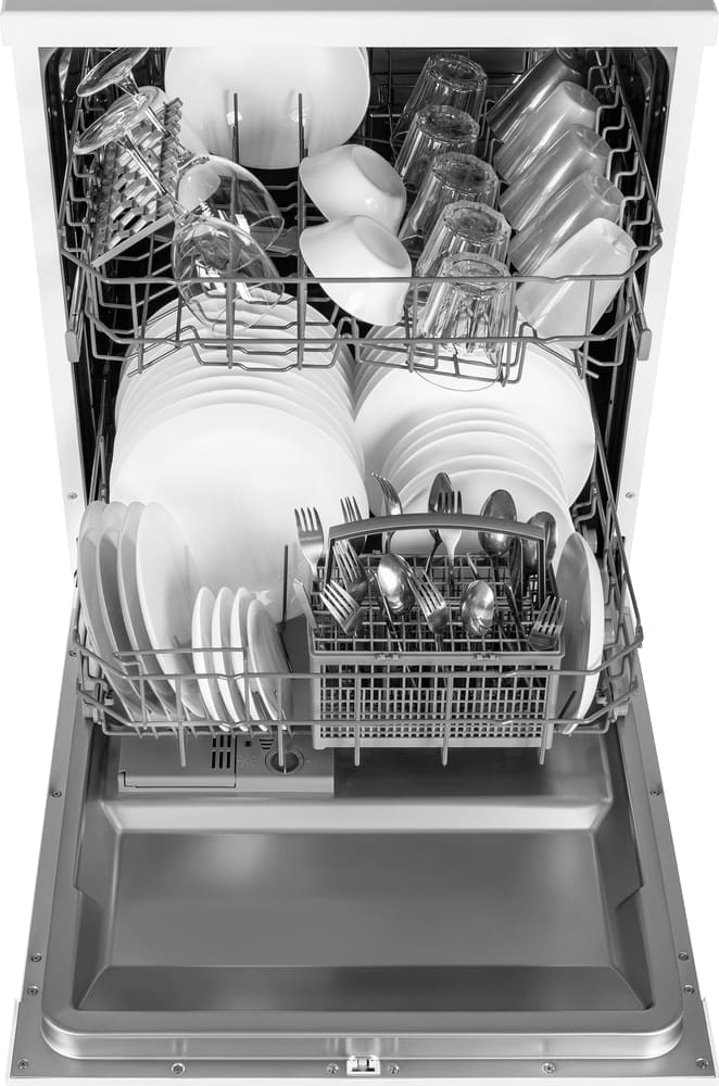 Полноразмерные модели выбирают в больших семьях, а также те, кто много готовит или часто принимает гостей. Их вместимость может составить до 15 комплектов посуды, а габаритные размеры соответствуют размерам стандартной кухонной мебели шириной и глубиной 60 см и высотой 82-85 см. Они выпускаются как во встраиваемом, так и в отдельностоящем варианте: во втором случае для установки понадобится достаточно много места. Как правило, полноразмерные приборы отличаются большим набором стандартных и специальных программ мойки, а также дополнительных опций: в частности, они оснащаются третьей корзиной для мытья столовых приборов.