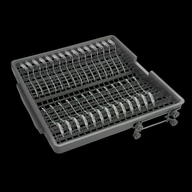 Корзина для столовых приборов — один из обязательных аксессуаров, которыми оснащается любая посудомоечная машина. Она представляет собой сетчатый пластиковый органайзер, в котором устанавливаются в вертикальном положении ложки, ножи и вилки. Корзина, как правило, разделяется на отдельные отсеки, в каждый из которых можно поместить один или несколько предметов. Зачастую сверху она закрывается специальной крышкой, которая также служит для разделения приборов, способствуя более тщательному их мытью.