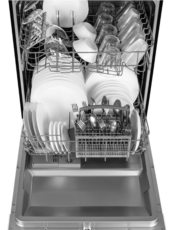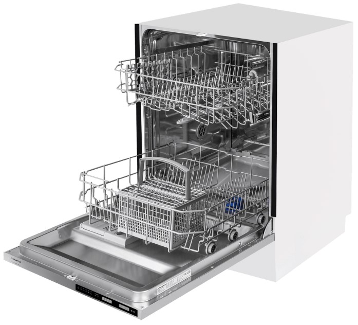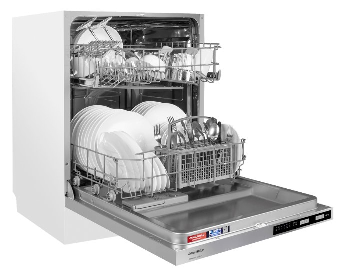 Встраиваемая модель Маунфилд отлично впишется в любой интерьер, главное — правильно выбрать место, чтобы подвести коммуникации. Устанавливается в нишу целиком, полностью закрывается декоративной панелью. Обратите внимание: в комплекте не идет фасад, его необходимо установить самостоятельно. Имеет стандартные размеры, поэтому может не поместиться на очень маленькой кухне. В камеру можно загрузить ограниченное число комплектов: 12 шт. Комплектом считается набор посуды на одного человека, который нужен для полноценного приема пищи: глубокая и плоская тарелки, тарелка для салата, блюдце под чашку, сама чашка, ложка и вилка.