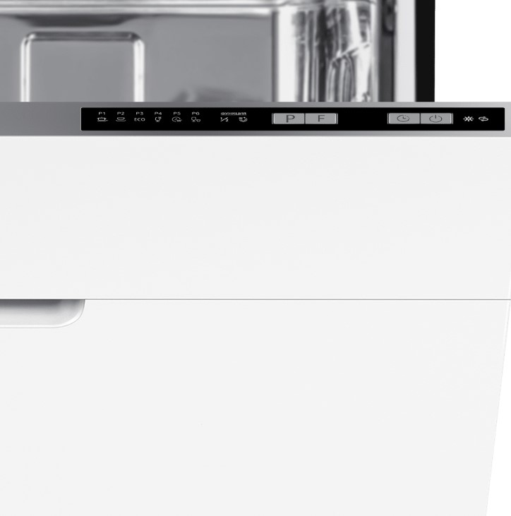 Цвет панели управления посудомоечной машины во многом зависит от типа устройства и расположения управляющих элементов. В большинстве современных посудомоек используется кнопочное либо сенсорное управление. В отдельностоящих и настольных моделях панель управления может быть открытой и располагаться на фронтальной части прибора, что облегчает установку параметров работы и контроль за выполнением программы. Во встраиваемых моделях с возможностью навески декоративного мебельного фасада панель управления чаще всего размещается на верхней кромке дверцы.