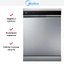 Посудомоечная машина Midea MFD60S350SI. Эта отдельностоящая полноразмерная модель имеет лаконичный серебристый корпус и чёрную панель управления, которая становится логичным акцентом на кухне и легко вписывается в современные интерьеры. Габариты 84.5×59.8×60 см соответствуют стандартным нишам и позволяют разместить прибор в большинстве кухонных планировок без дополнительных переделок.