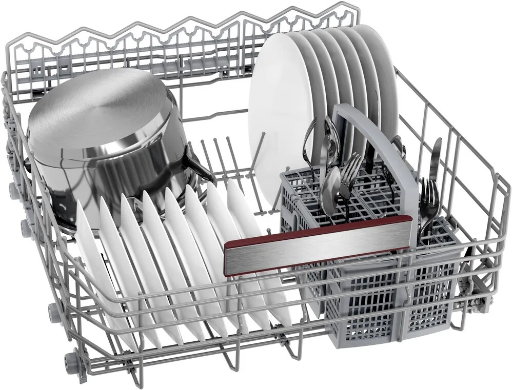 Встраиваемая модель Нефф отлично впишется в любой интерьер, главное — правильно выбрать место, чтобы подвести коммуникации. Устанавливается в нишу целиком, полностью закрывается декоративной панелью. Обратите внимание: в комплекте не идет фасад, его необходимо установить самостоятельно. Имеет стандартные размеры, поэтому может не поместиться на очень маленькой кухне. В камеру можно загрузить ограниченное число комплектов: 13 шт. Комплектом считается набор посуды на одного человека, который нужен для полноценного приема пищи: глубокая и плоская тарелки, тарелка для салата, блюдце под чашку, сама чашка, ложка и вилка.