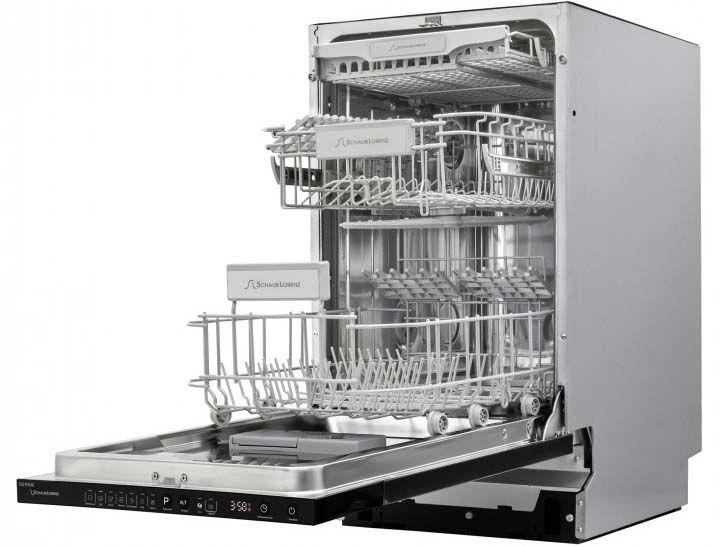 Полноразмерные модели выбирают в больших семьях, а также те, кто много готовит или часто принимает гостей. Их вместимость может составить до 15 комплектов посуды, а габаритные размеры соответствуют размерам стандартной кухонной мебели шириной и глубиной 60 см и высотой 82-85 см. Они выпускаются как во встраиваемом, так и в отдельностоящем варианте: во втором случае для установки понадобится достаточно много места. Как правило, полноразмерные приборы отличаются большим набором стандартных и специальных программ мойки, а также дополнительных опций: в частности, они оснащаются третьей корзиной для мытья столовых приборов.