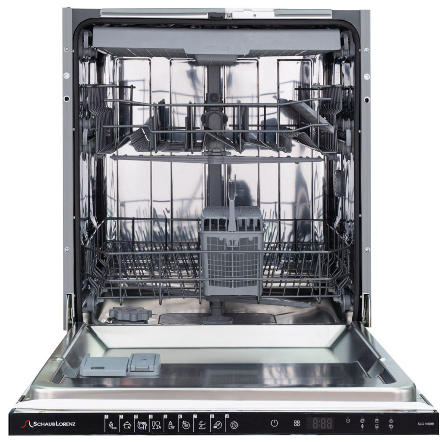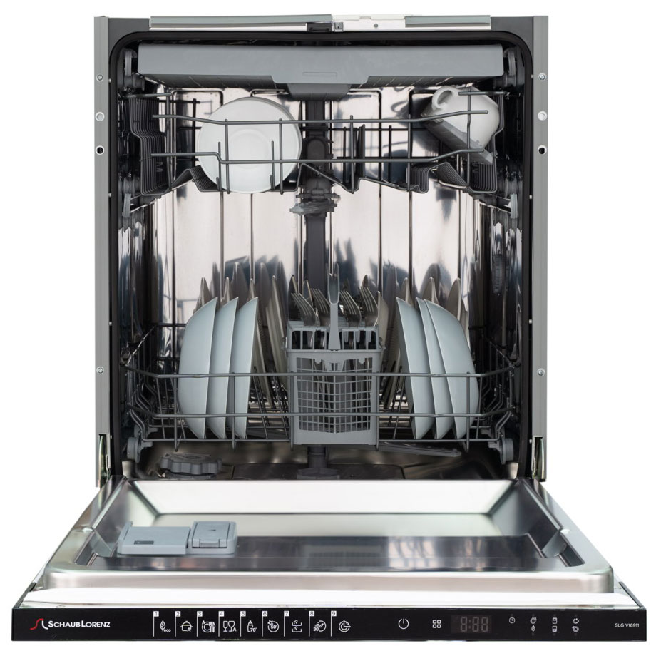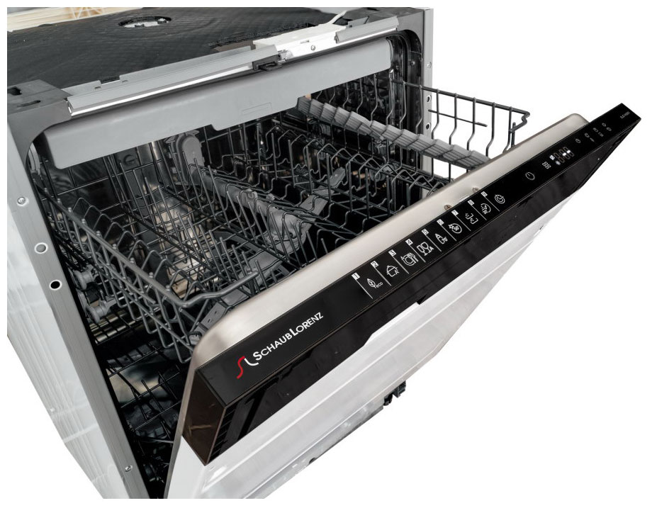 Встраиваемая модель Шауб Лоренц отлично впишется в любой интерьер, главное — правильно выбрать место, чтобы подвести коммуникации. Устанавливается в нишу целиком, полностью закрывается декоративной панелью. Обратите внимание: в комплекте не идет фасад, его необходимо установить самостоятельно. Имеет стандартные размеры, поэтому может не поместиться на очень маленькой кухне. В камеру можно загрузить ограниченное число комплектов: 13 шт. Комплектом считается набор посуды на одного человека, который нужен для полноценного приема пищи: глубокая и плоская тарелки, тарелка для салата, блюдце под чашку, сама чашка, ложка и вилка.