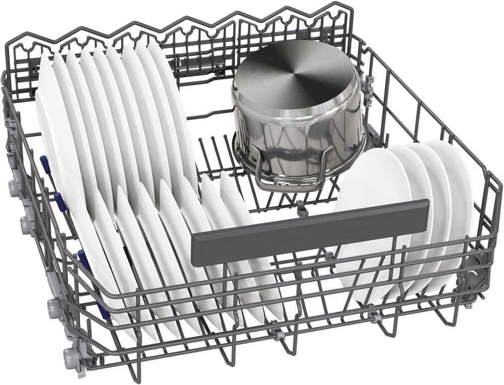 Верхняя корзина оснащена двумя складывающимися направляющими и составными складными полочками для чашек, держателями для хрупких стеклянных бокалов, фужеров или стаканов, полочкой для ножей и корзиной для столовых приборов. Ее можно легко перемещать по высоте с фиксацией в одном из трех положений, даже если корзина полностью загружена. В ряде моделей для размещения ложек, ножей и вилок служит третий уровень размещения Variodrawer.