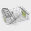 В данной модели две основные корзины: верхнюю можно регулировать по высоте на трех уровнях, нижняя оборудована держателями и специальными насадками, ускоряющими сушку (благодаря им тарелки не соприкасаются с металлическими прутьями — и влага быстрее уходит). Столовые приборы размещаются в отдельной корзинке.