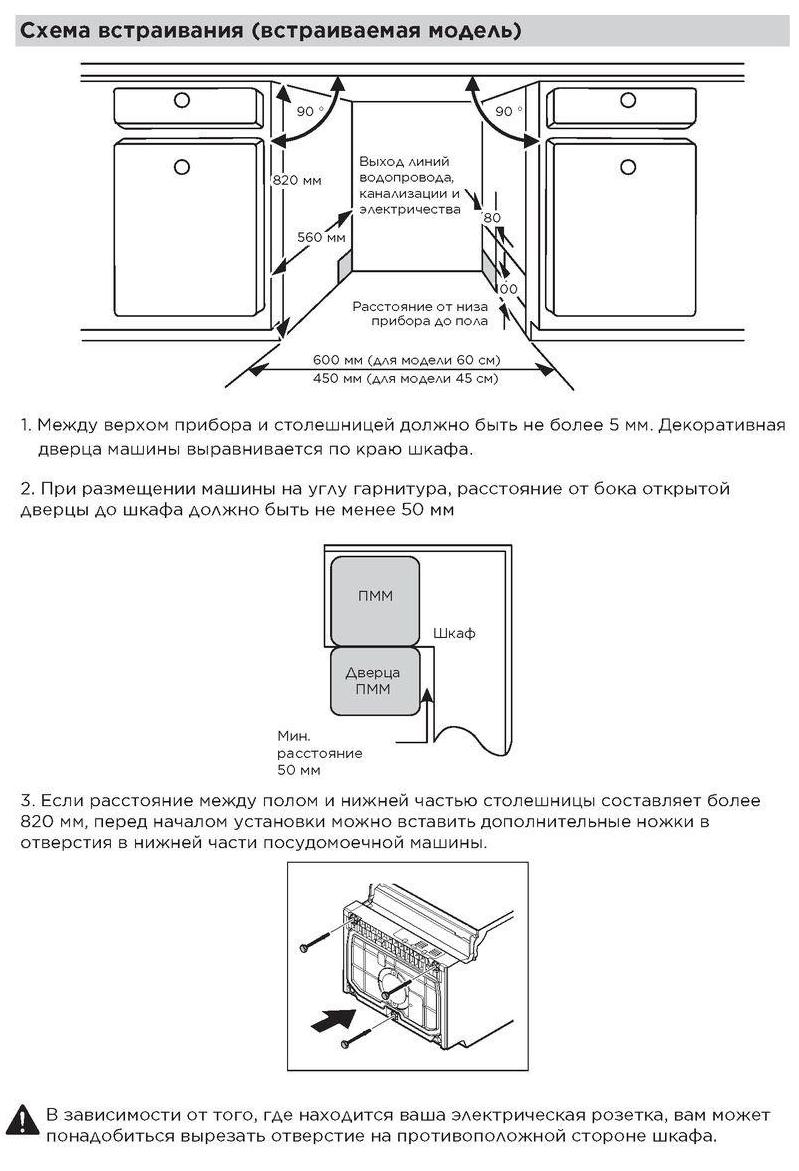 Многие отдельностоящие приборы отличает высота 85 см, однако они оснащаются съемной крышкой, что также позволяет устанавливать их под столешницей. Высоту можно немного изменить при помощи регулируемых ножек — это касается в основном встраиваемых моделей.