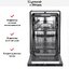 Дизайн рассчитан на минимализм и практичность, поэтому внешний фасад может быть оформлен под ваш шкаф. Узкая конструкция не жертвует вместимостью: машина принимает до 11 комплектов. Это оптимальный вариант для семьи из 2-4 человек или для небольшой студийной кухни. Корзина для столовых приборов упрощает размещение ножей и ложек, а использование таблеток 3 в 1 делает уход ещё проще, совмещая мойку, ополаскивание и защиту от накипи.