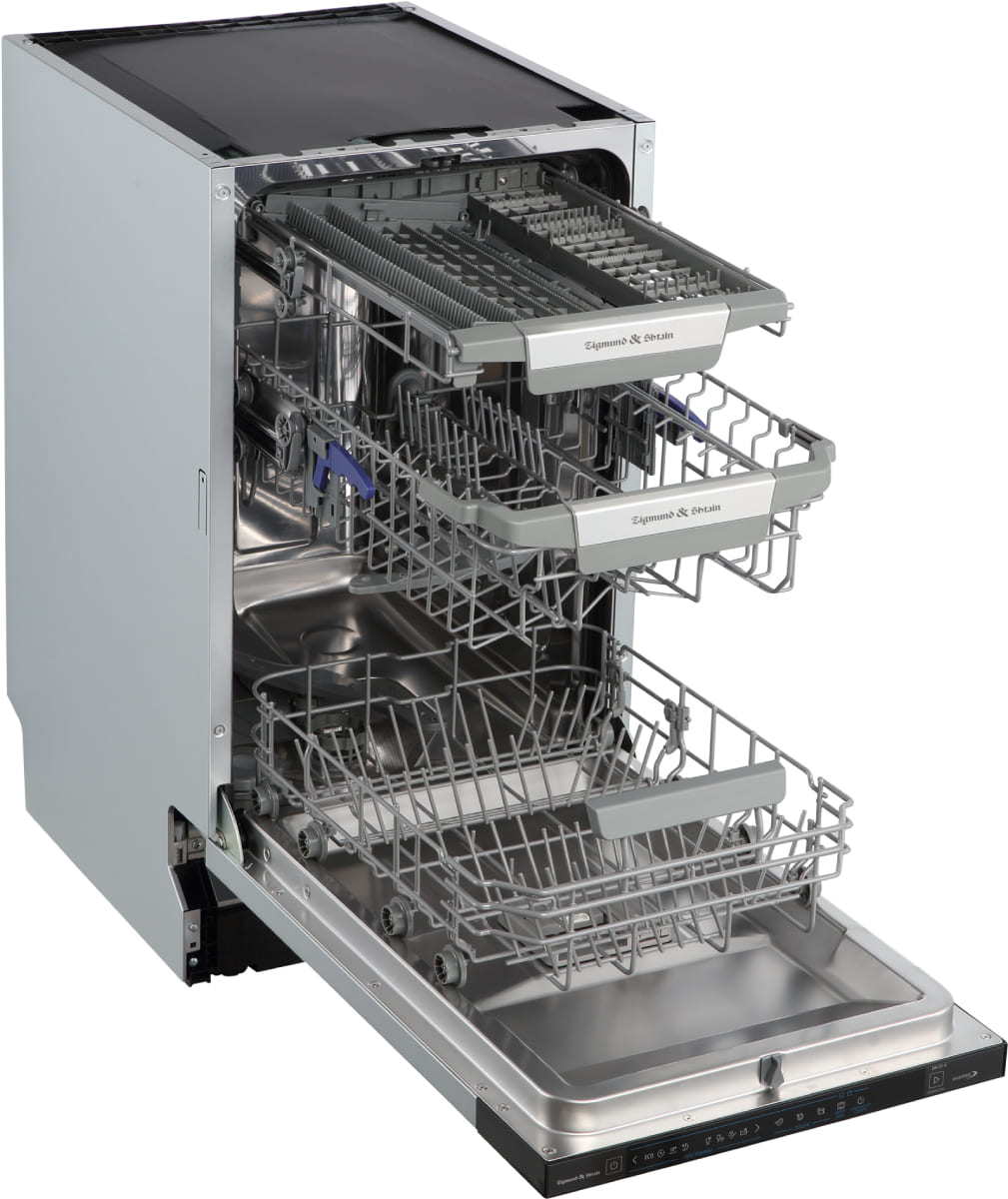 Встраиваемая модель Зигмунд Штайн отлично впишется в любой интерьер, главное — правильно выбрать место, чтобы подвести коммуникации. Устанавливается в нишу целиком, полностью закрывается декоративной панелью. Обратите внимание: в комплекте не идет фасад, его необходимо установить самостоятельно. Имеет уменьшенную ширину — благодаря этому поместится даже на очень маленькой кухне. В камеру можно загрузить ограниченное число комплектов: 10 шт. Комплектом считается набор посуды на одного человека, который нужен для полноценного приема пищи: глубокая и плоская тарелки, тарелка для салата, блюдце под чашку, сама чашка, ложка и вилка.