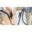 Шнур питания автоматически сматывается по завершении уборки. Для удлинения расстояния от корпуса до насадки используется специальная трубка, в данном случае — телескопическая. Сами насадки можно хранить в предусмотренном для этого отсеке.