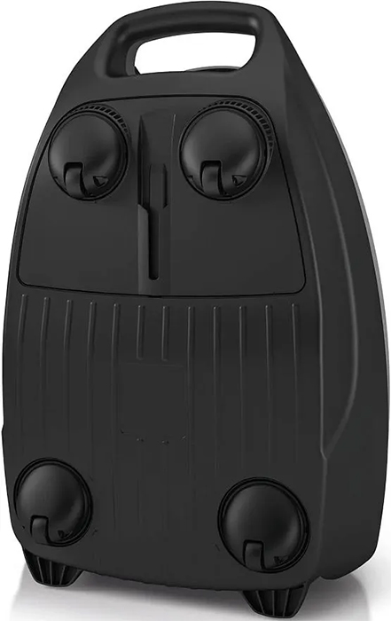 Пылесосы с мешком-пылесборником — недорогие напольные устройства с работой от электросети. В сменный мешок из плотного воздухопроницаемого материала с закрывающим клапаном, который находится внутри корпуса устройства, всасывается загрязненный воздух с пылью, шерстью животных и другим мусором.
