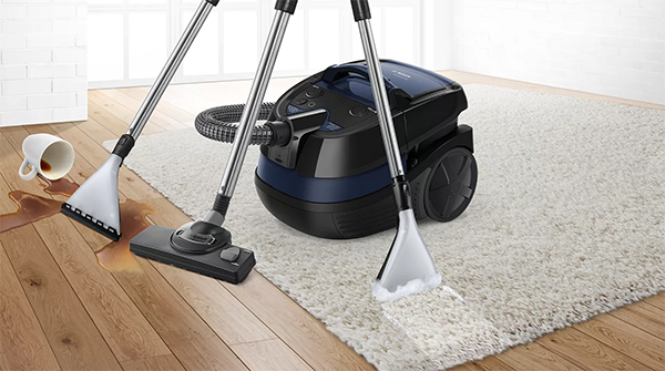 Пылесос Bosch BWD41700 имеет стандартную конфигурацию — корпус на колесах, крепящийся к нему шланг с трубками-удлинителями и насадками. Данная модель рассчитана на сухую и влажную уборку — удобный многофункциональный вариант для семей с детьми, владельцев животных, любителей растений и просто для тех, кто хочет без особых усилий поддерживать дома идеальную чистоту. Пылесборник-мешок — привычный вариант, с которым легко работать, можно не беспокоиться о чрезмерном расходе электроэнергии. Он тщательно запирает внутри крупную пыль, но может незначительно пропускает очень мелкие частицы. Объем заполнения пылесборника — 1.5 л.