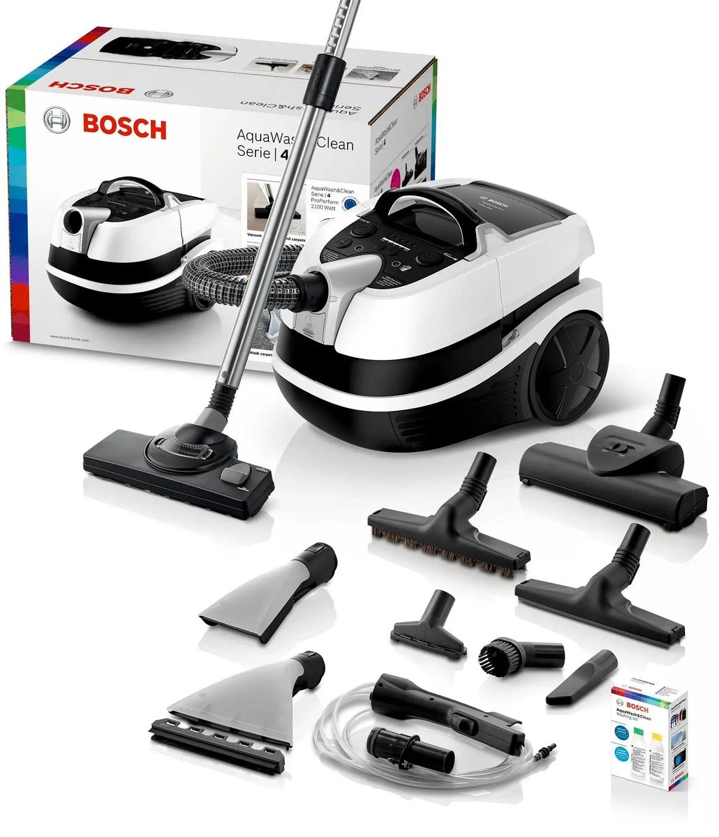 Пылесос Bosch BWD421PRO имеет стандартную конфигурацию — корпус на колесах, крепящийся к нему шланг с трубками-удлинителями и насадками. Данная модель рассчитана на сухую и влажную уборку — удобный многофункциональный вариант для семей с детьми, владельцев животных, любителей растений и просто для тех, кто хочет без особых усилий поддерживать дома идеальную чистоту. Пылесборник-мешок — привычный вариант, с которым легко работать, можно не беспокоиться о чрезмерном расходе электроэнергии. Он тщательно запирает внутри крупную пыль, но может незначительно пропускает очень мелкие частицы. Объем заполнения пылесборника — 1.5 л.