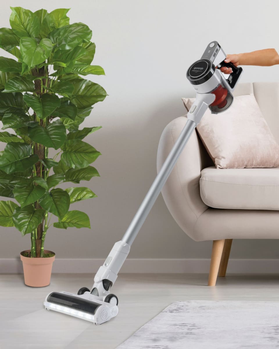 Тщательная уборка возможна за счет установленных фильтров, в их числе: Active HEPA. Регулировать силу всасывания удобно с помощью переключателей на рукоятке. Контролировать процесс просто — взгляните на дисплей. Благодаря индикаторам вам доступна информация: разрядки аккумулятора.