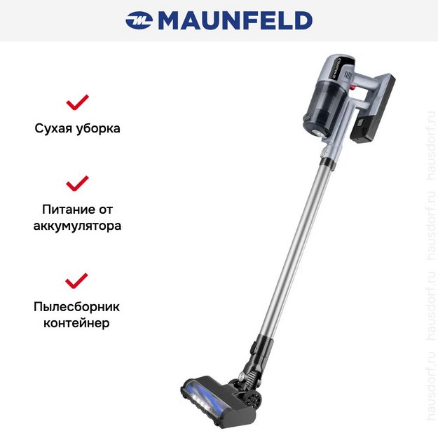 Вертикальный пылесос Maunfeld MF-2032GR PRO отличается высокой ручкой с насадкой, благодаря которой не нужно наклоняться во время уборки, а также компактным корпусом. Данная модель рассчитана только на сухую уборку, которой достаточно для большинства пользователей. Мощный поток воздуха позволяет быстро всасывать как мелкие, так и крупные частицы, волосы и шерсть. Основной цвет прибора — серый. В качестве пылесборника производитель установил стандартный контейнер. Пользоваться им легко и удобно: чтобы очистить, просто достаньте его и высыпьте все в мусорное ведро, а затем протрите или вымойте емкость изнутри. Объем заполнения пылесборника — 0.5 л.