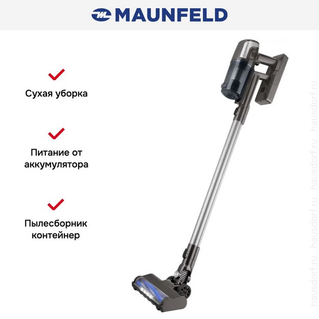 Вертикальный пылесос Maunfeld MF-2033GR отличается высокой ручкой с насадкой, благодаря которой не нужно наклоняться во время уборки, а также компактным корпусом. Данная модель рассчитана только на сухую уборку, которой достаточно для большинства пользователей. Мощный поток воздуха позволяет быстро всасывать как мелкие, так и крупные частицы, волосы и шерсть. Основной цвет прибора — серый. В качестве пылесборника производитель установил стандартный контейнер. Пользоваться им легко и удобно: чтобы очистить, просто достаньте его и высыпьте все в мусорное ведро, а затем протрите или вымойте емкость изнутри. Объем заполнения пылесборника — 0.5 л.