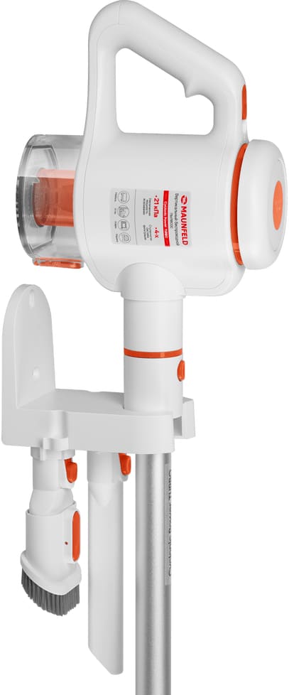 Вертикальный пылесос Maunfeld MF-2034OR PRO отличается высокой ручкой с насадкой, благодаря которой не нужно наклоняться во время уборки, а также компактным корпусом. Данная модель рассчитана только на сухую уборку, которой достаточно для большинства пользователей. Мощный поток воздуха позволяет быстро всасывать как мелкие, так и крупные частицы, волосы и шерсть. Основной цвет прибора — оранжевый. В качестве пылесборника производитель установил стандартный контейнер. Пользоваться им легко и удобно: чтобы очистить, просто достаньте его и высыпьте все в мусорное ведро, а затем протрите или вымойте емкость изнутри. Объем заполнения пылесборника — 0.65 л.