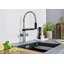 Внутри крана помещается шланг, который можно растянуть, чтобы достать струей воды до второй чаши мойки или тщательно сполоснуть посуду.