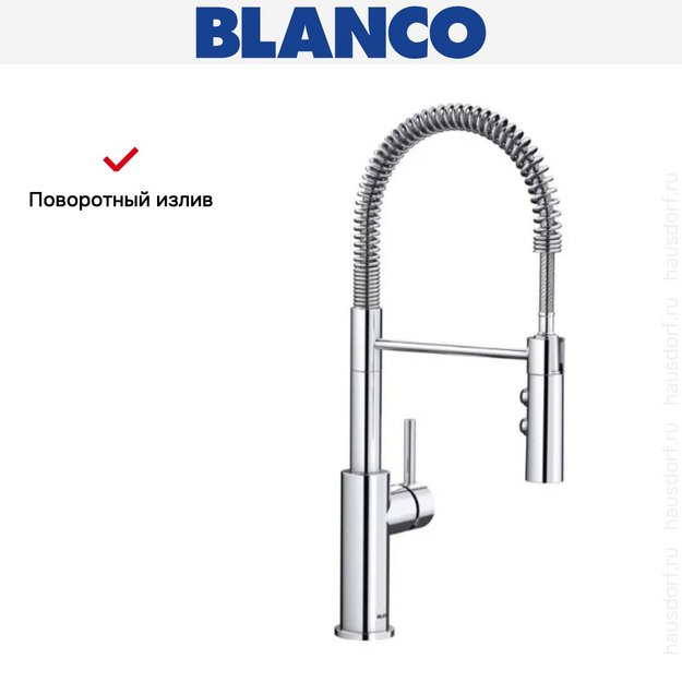 Поворотный излив облегчает работу на кухне или в ванной — вы можете направлять воду в нужном направлении. Смесители многих производителей имеют угол поворота 180 градусов, что особенно удобно для мойки с двумя чашами.