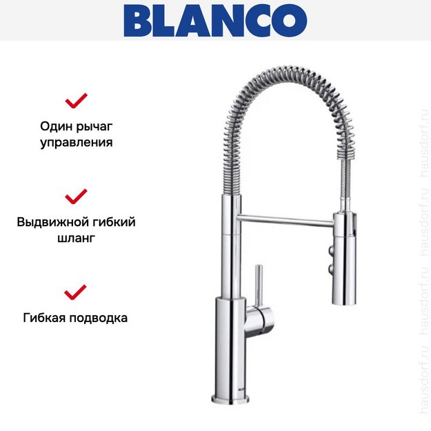 Смеситель Бланко — отличный выбор для кухни и ванной комнаты. Простая конструкция позволяет изменять напор и температуру воды с помощью одного рычага: двигайте его вправо-влево или вверх-вниз для достижения нужного результата. Эта модель подойдет современному интерьеру, будет незаменима, если в вашем распоряжении небольшое пространство для сантехники. Благодаря запорному механизму в виде керамических пластин такой смеситель прослужит много лет, так как в нем отсутствуют быстро стирающиеся прокладки; также на клапане практически не образуется накипь. При повороте ручки диски внутри смещаются относительно друг друга — открывают или блокируют воду.
