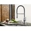 Внутри крана помещается шланг, который можно растянуть, чтобы достать струей воды до второй чаши мойки или тщательно сполоснуть посуду.