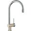 Внутри крана помещается шланг, который можно растянуть, чтобы достать струей воды до второй чаши мойки или тщательно сполоснуть посуду.