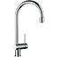 Внутри крана помещается шланг, который можно растянуть, чтобы достать струей воды до второй чаши мойки или тщательно сполоснуть посуду.