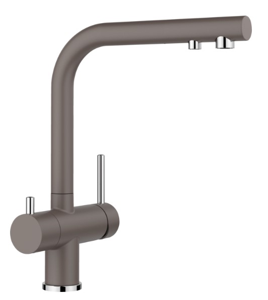 Рычаг для включения фильтрованной воды применяется в современных комбинированных смесителях, где из одного и того же излива подается и водопроводная, и питьевая вода. Такие смесители типа «два в одном» отличаются от обычных тем, что имеют не два подключения, а три, где третье соединяет смеситель с фильтром. Очищенная вода подается по изолированной трубке, проходящей внутри излива. Для удаления накипи, солей металлов, микроорганизмов и прочих вредных примесей могут применяться различные типы фильтров. Проточные фильтры устанавливаются под мойкой и включают несколько картриджей, которые необходимо менять по мере использования. С их помощью можно избавиться от таких примесей, как железо, хлор и многие другие. Устройства с системой обратного осмоса оснащаются диффузором, включающим картриджи для предварительной очистки и осмотическую мембрану, задерживающую практически все вредные примеси.