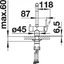 Длиной излива называется расстояние по горизонтали от основания смесителя до точки в раковине, куда падает струя воды. Учитывать длину при выборе смесителя и мойки так же важно, как и высоту. Основной фактор выбора: струя должна попадать в середину раковины, а не на одну из боковых поверхностей, чтобы не забрызгать столешницу и рядом стоящую бытовую технику. В идеале она должна попадать прямо на сливное отверстие, в крайнем случае место падения должно располагаться между сливным отверстием и передней стенкой. При этом нужно учитывать угол, под которым падает струя, а также расстояние от основания смесителя до ближайшей стенки раковины. Проводить измерения следует при максимальном напоре воды.