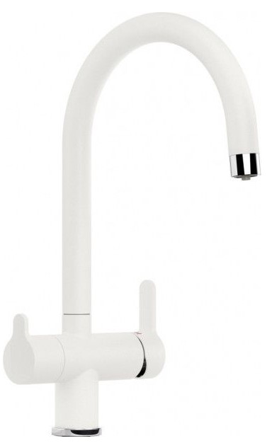 Рычаг для включения фильтрованной воды применяется в современных комбинированных смесителях, где из одного и того же излива подается и водопроводная, и питьевая вода. Такие смесители типа «два в одном» отличаются от обычных тем, что имеют не два подключения, а три, где третье соединяет смеситель с фильтром. Очищенная вода подается по изолированной трубке, проходящей внутри излива. Для удаления накипи, солей металлов, микроорганизмов и прочих вредных примесей могут применяться различные типы фильтров. Проточные фильтры устанавливаются под мойкой и включают несколько картриджей, которые необходимо менять по мере использования. С их помощью можно избавиться от таких примесей, как железо, хлор и многие другие. Устройства с системой обратного осмоса оснащаются диффузором, включающим картриджи для предварительной очистки и осмотическую мембрану, задерживающую практически все вредные примеси.