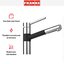 Внутри крана помещается шланг, который можно растянуть, чтобы достать струей воды до второй чаши мойки или тщательно сполоснуть посуду.