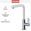 Дизайн выполнен в духе коллекции Maris, где каждая линия ориентирована на лаконичность и функциональность. Белое покрытие придаёт изделию лёгкость и универсальность, оно гармонирует с светлыми и контрастными рабочими поверхностями. Корпус из латуни обеспечивает долгий срок службы и устойчивость к коррозии, при этом материал легко поддаётся чистке и сохраняет вид при регулярной эксплуатации. Высота смесителя 29.1 см и высота излива 26 см дают достаточно пространства под соплом для заполнения высоких ёмкостей и удобной мойки кастрюль.